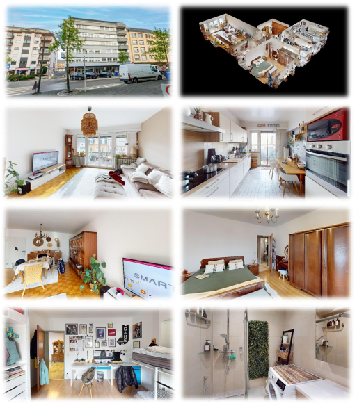 L’appartement B au 2e étage, comprend : hall d’entrée, salon- salle à manger, cuisine équipée avec balcon, deux chambres à coucher, une salle de bain, WC séparé, une cave, un garage, buanderie commune, Construction en 1974, chauffage à gaz,